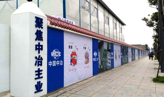 中國二冶集團成都二十中學改擴建工程是中國二冶在西南地區的首個工程,也是樹形象創品牌的重點工程。順著金牛區茶店子橫街一路走向施工現場,五百多米的施工外圍墻上中冶文化與中國二冶集團簡介、項目管理體系、業務體系、企業資質和業績等內容互相交替,同時融入了社會主義核心價值觀和項目效果圖,墻頭上覆蓋著棕紅色的琉璃瓦,整個圍墻既規范整齊,又古樸典雅,做到了成都古城風韻、新二十中學民國風格和中國二冶集團企業文化的完美結合,充分展現了中國二冶集團作為央企的社會責任,成為成都街頭一道獨特而又靚麗的風景,常引得路人駐足觀看。