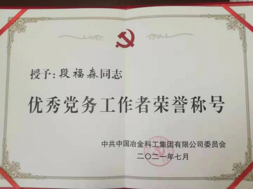 通過不斷地積累與總結(jié),提煉以往工作經(jīng)驗,不斷加強自身思想建設(shè)、提升工作能力,段福森同志被授予“中冶集團安全生產(chǎn)先進個人”“中冶集團優(yōu)秀黨務(wù)工作者”“包頭市優(yōu)秀黨務(wù)工作者”“中國二冶優(yōu)秀黨務(wù)工作者”“中國二冶先進生產(chǎn)工作者”等榮譽稱號。