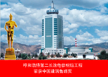 呼和浩特第二長途電信樞紐工程,是國家重點通訊基礎(chǔ)設(shè)備建設(shè)項目,內(nèi)蒙古自治區(qū)成立50周年的獻(xiàn)禮項目,獲得中國建筑工程“魯班獎”。